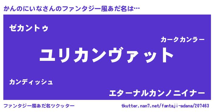 | 欧米人風あだ名 | 『トリンドルかんのにいな』 |