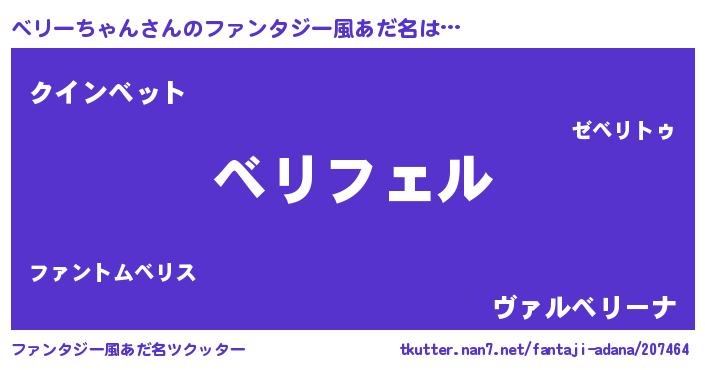 | ポケモン風あだ名 | 『ベリゴンZ』『ベリチュウ』 |