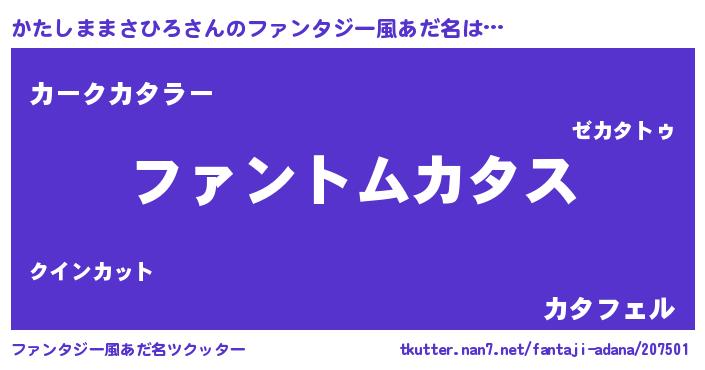 | ヒーロー風カッコイイあだ名 | 『幻影騎士カタ』『ネオカタシママサヒロ』 |