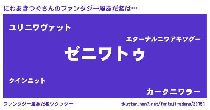 | 意味不明あだ名 | 『自称にわあきつぐ』 |