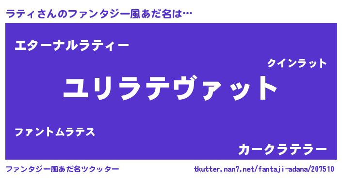 | 男性向けラノベタイトル風あだ名 | 『はたらくラティさま!』『緋弾のラティ』 |