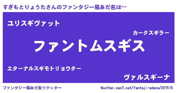 | 男性向けラノベタイトル風あだ名 | 『すぎもとりょうたの嫁は女の子じゃないと思った?』 |