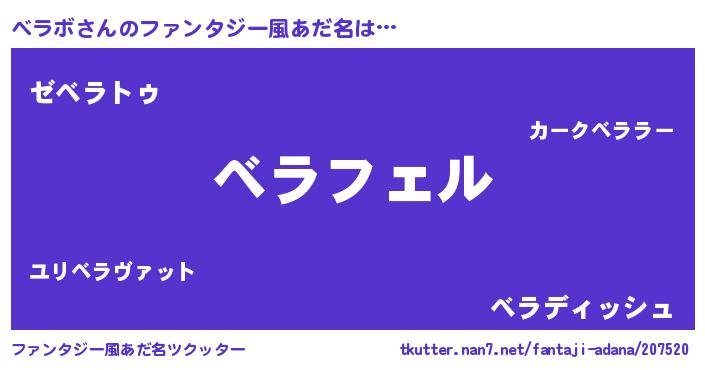 | ヘコむあだ名 | 『べラっふぃ~』『べラボ(小並感)』 |