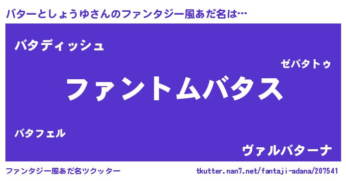 | ヒーロー風カッコイイあだ名 | 『銀牙騎士バタ』『ネオバタートショウユ』 |