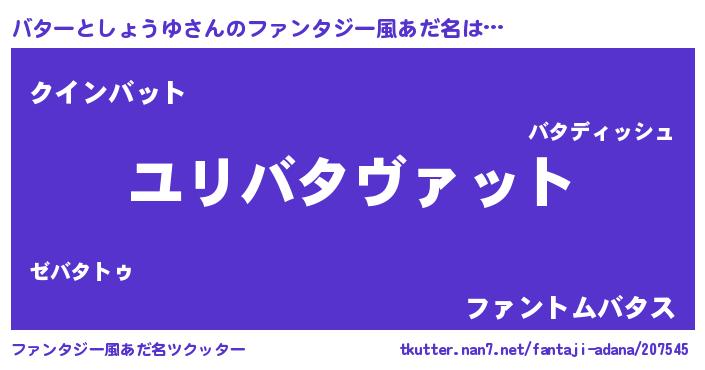| 男性向けラノベタイトル風あだ名 | 『転生したらバターとしょうゆだった件』 |