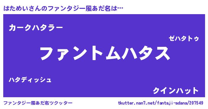 | ポケモン風あだ名 | 『ハタゴンZ』『ヒハタメイ』 |