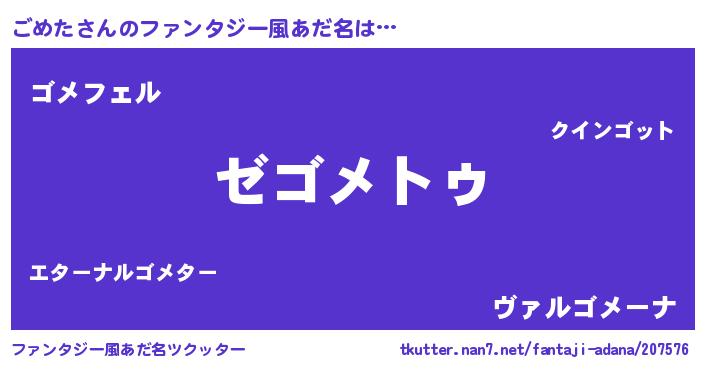 | 意味不明あだ名 | 『自称ごめた』『ペロリンごめた』 |