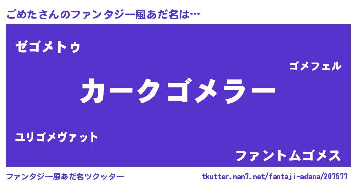| 自動車の名前っぽいあだ名 | 『フェゴーメ』『レクゴス』『ゴント』 |