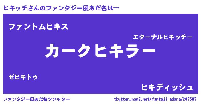 | 自動車の名前っぽいあだ名 | 『フェヒーキ』『ヒルトキパン』 |