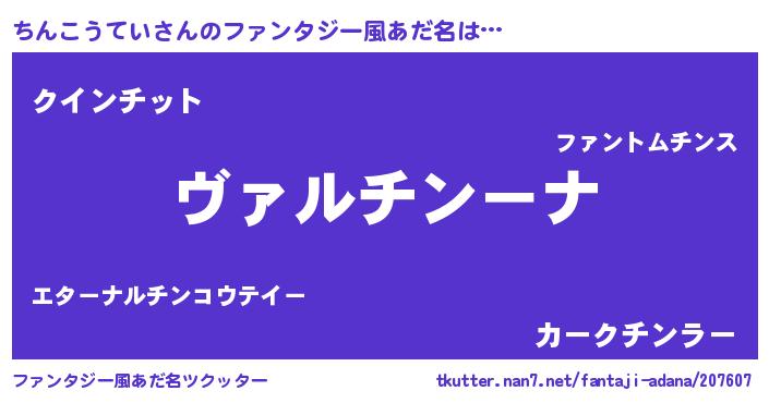 | 女子向けラノベタイトル風あだ名 | 『ちんこうていが死なない童話 林檎のちんこうていの診療簿』 |