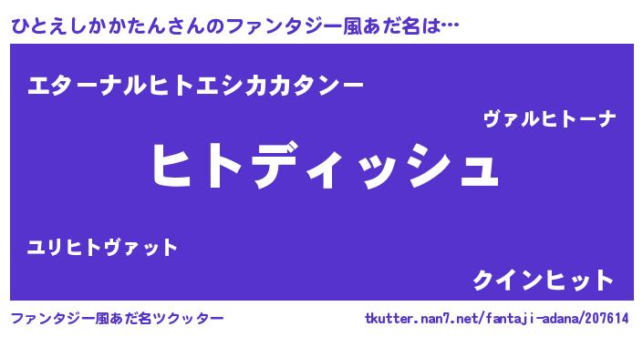 | ヒーロー風カッコイイあだ名 | 『ネオヒトエシカカタン』『仮面ヒトダー』 |