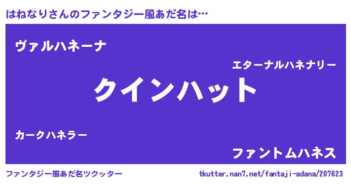 | 男性向けラノベタイトル風あだ名 | 『ノーゲーム・ノーハネナリ』 |