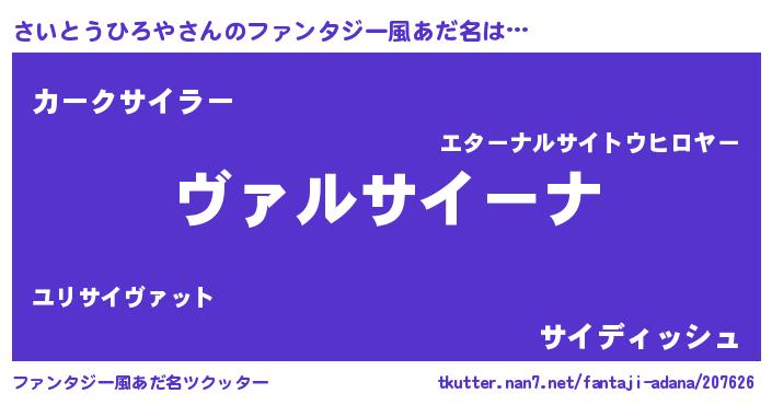 | 男性向けラノベタイトル風あだ名 | 『この素晴らしい世界にさいとうひろやを!』 |
