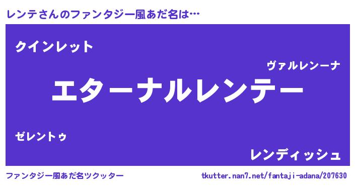 | 男性向けラノベタイトル風あだ名 | 『レンテに滅ぼされるだけの簡単なお仕事です』 |
