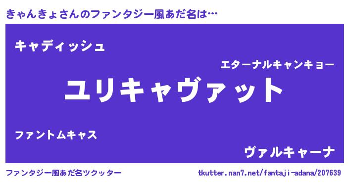 | 男性向けラノベタイトル風あだ名 | 『キャンキョスレイヤー』 |