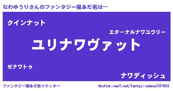 | ヒーロー風カッコイイあだ名 | 『慈愛の使者なわゆうり』『幻影騎士ナワ』 |