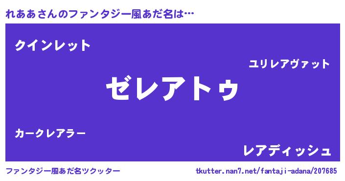 | 男性向けラノベタイトル風あだ名 | 『Re:れああから始める異世界生活』 |
