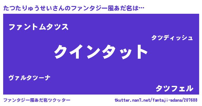 | 自動車の名前っぽいあだ名 | 『タンR』『タント』『タツティマ』 |