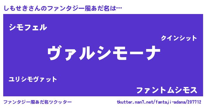 | 意味不明あだ名 | 『住所不定無職しもせき(11歳)』 |