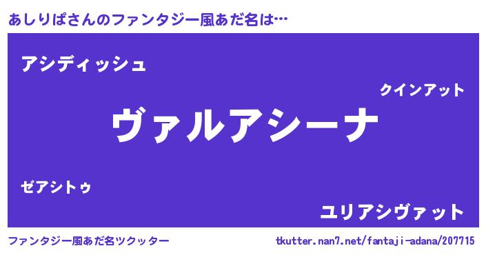 | 料理風あだ名 | 『あしりぱのカルパッチョ風』 |