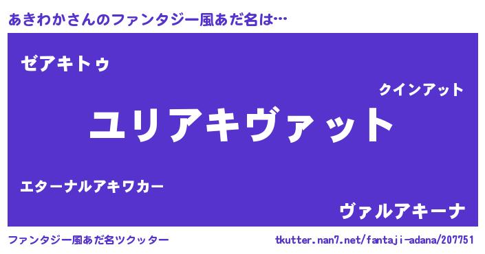 | 男性向けラノベタイトル風あだ名 | 『アキワカスレイヤー』 |