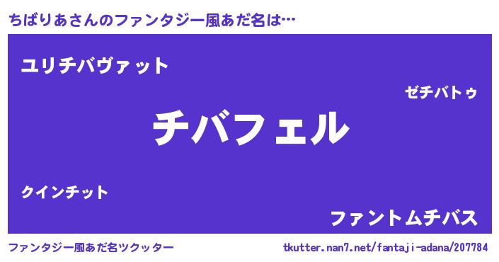 ちばりあさんのファンタジー風あだ名をツクッター!