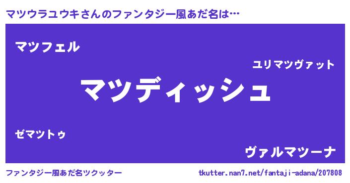| 意味不明あだ名 | 『永久保存マツウラユウキ』 |