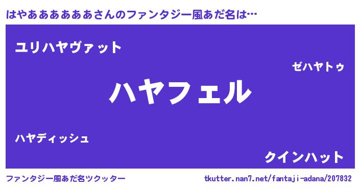 | ヒーロー風カッコイイあだ名 | 『スーパーハヤアアアアアア』 |