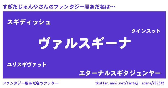 | 男性向けラノベタイトル風あだ名 | 『魔弾の王とすぎたじゅんや』 |