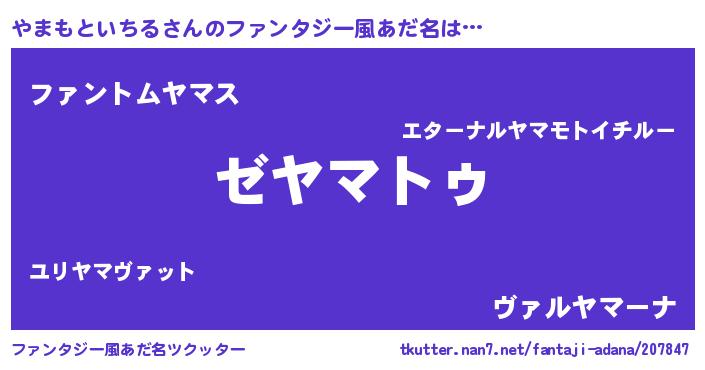 やまもといちるさんのファンタジー風あだ名をツクッター!