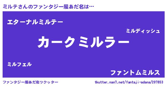 | 意味不明あだ名 | 『ミルテフォーエバー』『永久保存ミルテ』 |