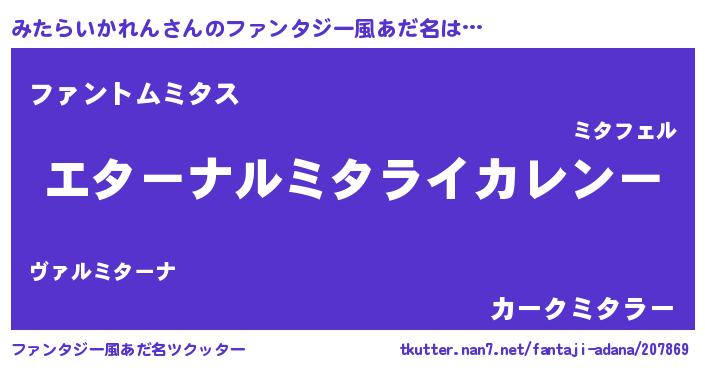 | 欧米人風あだ名 | 『みたらいかれんクリステル』 |