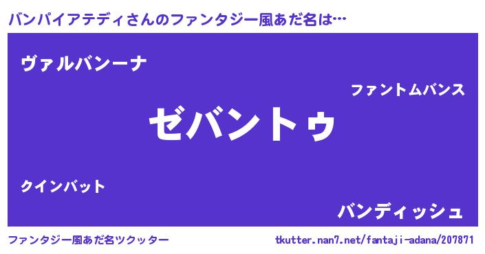 | 女子向けラノベタイトル風あだ名 | 『バンパイアテディなんてお断りですっ。』 |