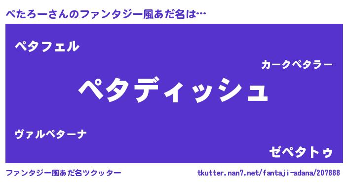 | 男性向けラノベタイトル風あだ名 | 『ぺたろーに滅ぼされるだけの簡単なお仕事です』 |