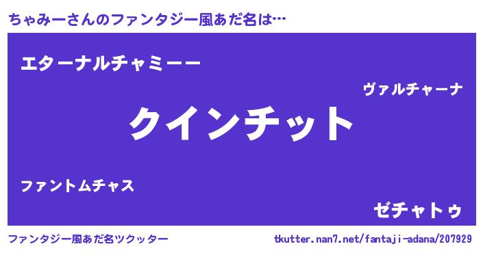 | ヒーロー風カッコイイあだ名 | 『愛の使者ちゃみー』『最強戦士チャミー』 |