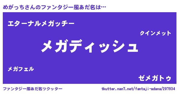 | 男性向けラノベタイトル風あだ名 | 『めがっちという概念が存在しない退屈な世界 』 |