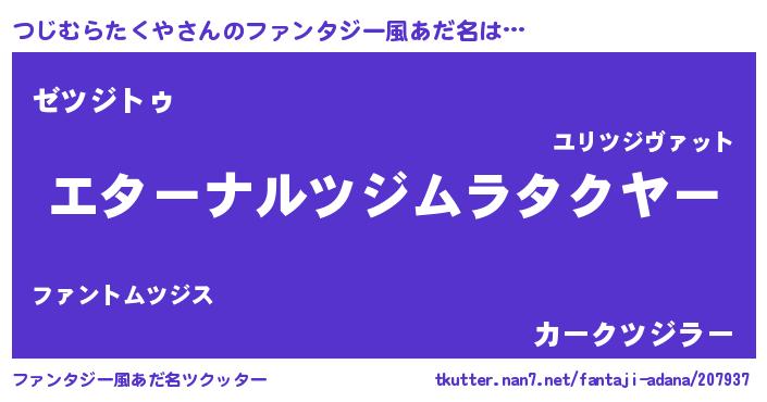 | 男性向けラノベタイトル風あだ名 | 『やはりつじむらたくやの青春ラブコメはまちがっている 』 |