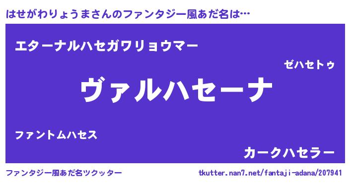 | 意味不明あだ名 | 『住所不定無職はせがわりょうま(86歳)』 |