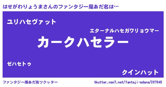 | 男性向けラノベタイトル風あだ名 | 『緋弾のハセガワリョウマ』 |