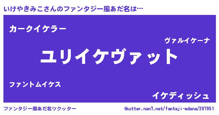 | 男性向けラノベタイトル風あだ名 | 『転生したらいけやきみこだった件』 |