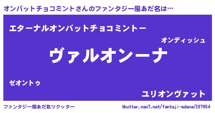 | 男性向けラノベタイトル風あだ名 | 『この素晴らしい世界にオンバットチョコミントを!』 |