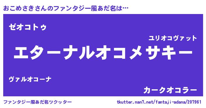 | 欧米人風あだ名 | 『おこめさきクリステル』 |