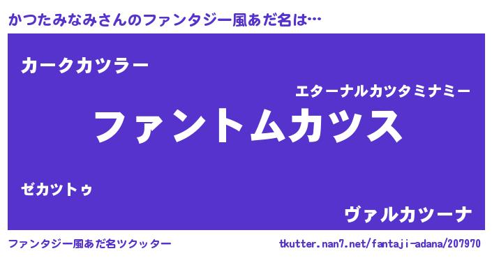 | 男性向けラノベタイトル風あだ名 | 『かつたみなみの嫁は女の子じゃないと思った?』 |