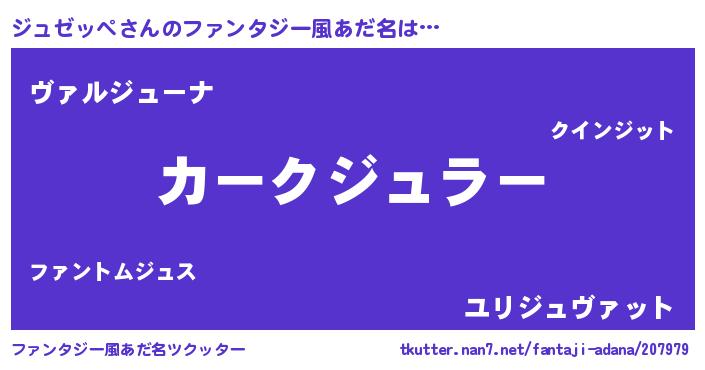 | 男性向けラノベタイトル風あだ名 | 『うちのジュゼッペが世界を掌握している!』 |