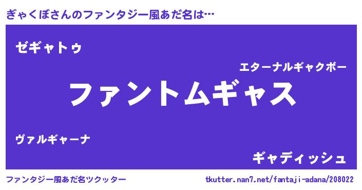 | ヒーロー風カッコイイあだ名 | 『魔戒騎士ギャ』『サイバー戦士ギャクボ』 |