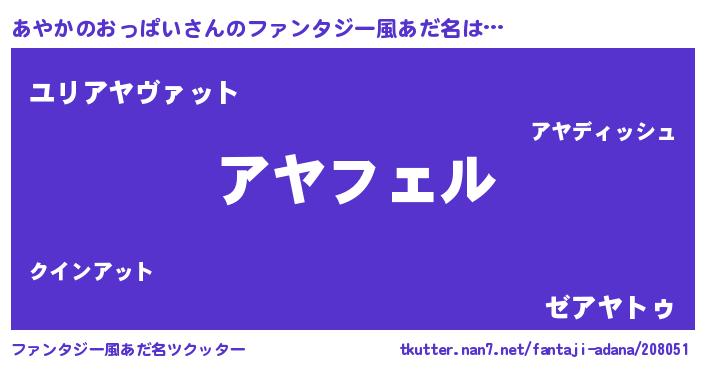 | 胡散臭い通販商品みたいなあだ名 | 『必ず成功する霊験あらたかなお札…その名も「あやかのおっぱい」』 |