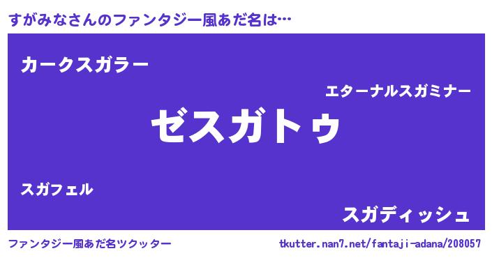 | 男性向けラノベタイトル風あだ名 | 『Re:すがみなから始める異世界生活』 |