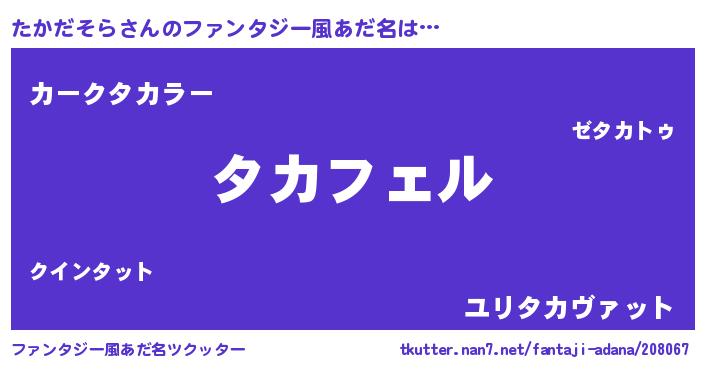 | 男性向けラノベタイトル風あだ名 | 『タカダソラアートオンライン』 |