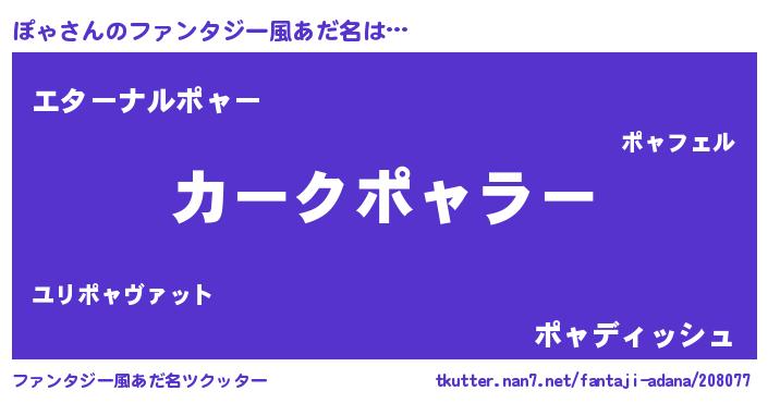 | 男性向けラノベタイトル風あだ名 | 『緋弾のポャ』『ポャアートオンライン』 |