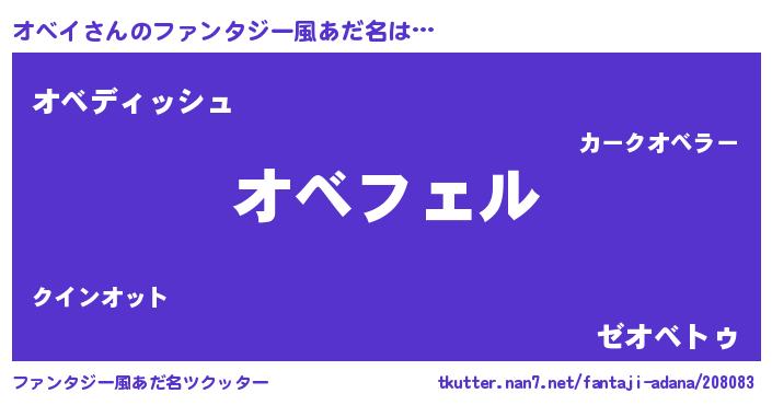 | ヘコむあだ名 | 『オベにー』『オベイ(爆)』『オベを』 |